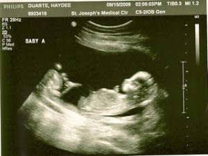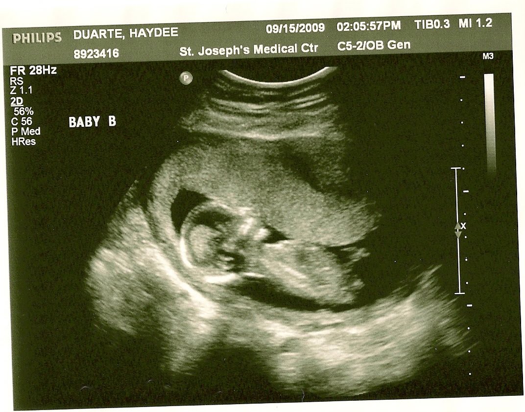 The pictures above were really fun. It was really the first time I could see them so clearly, instead of just looking at two little fuzzballs on the screen. I was shocked to see them positioned with their feet towards each other, but my doctor says they will do a whole lot more moving around before I deliver them. Although both of them wriggled around a lot during the ultrasound, Baby B was especially active–kicking and stretching its arms. So cute!