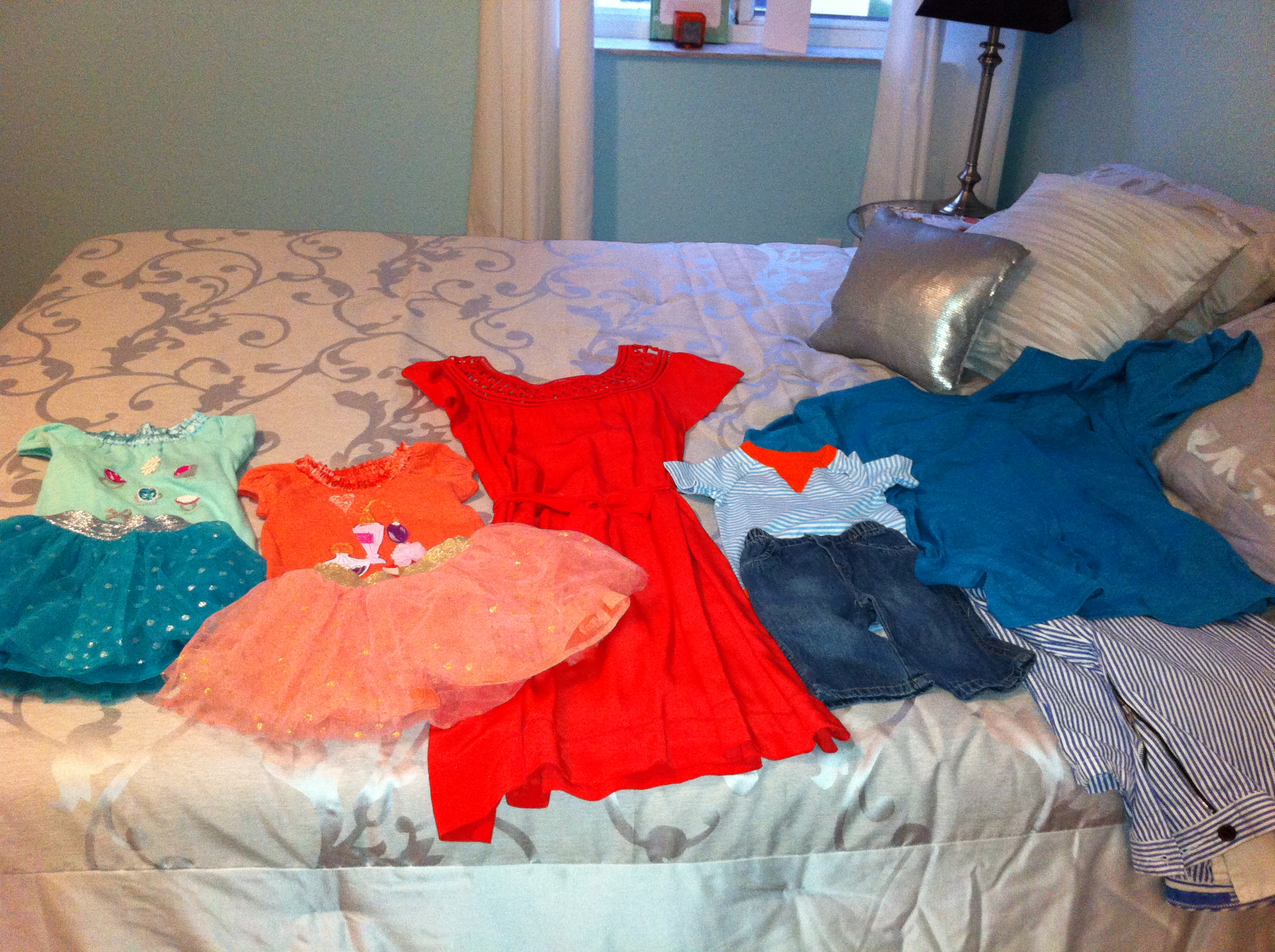 After trying on several different looks, I was ultra pleased that one of my favorite bright dresses finally fit again! Victor suggested wearing his seersucker pants since they are so beachy and comfortable. Once we figured out our outfits, I was on the hunt for the kids’ outfits.