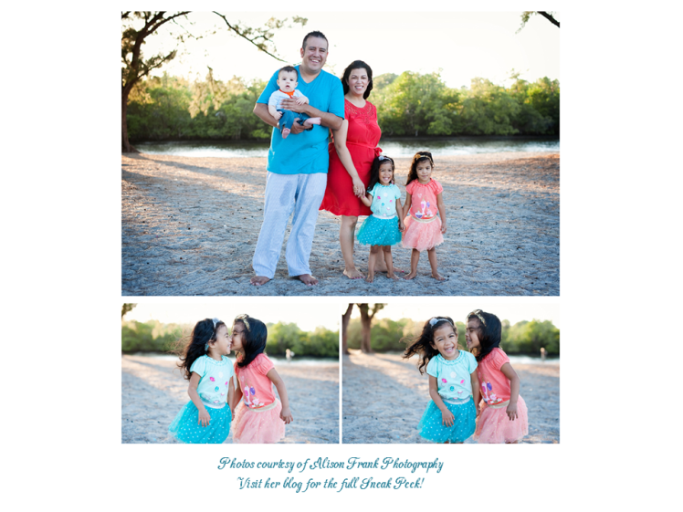 We had a wonderful time at the beach, and are very happy with the Sneak Peek of our photo session. Alison is such a talented photographer and so great with the girls and the baby. She has so much patience and such an eye for beauty. Please visit her blog for the full sneak peek, and if you’re in the South Florida area, I highly recommend her for your own family photo session or special event. You can see visit her full professional website here.