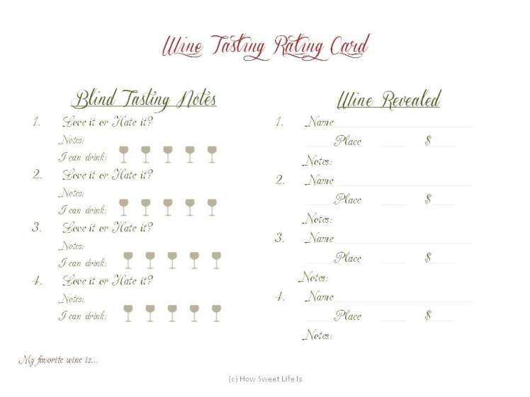 5 x 7 PDF file to use for the wine tasting and reveal: wine tasting rating card {white background — prints best on cream or soft neutral colour card stock}